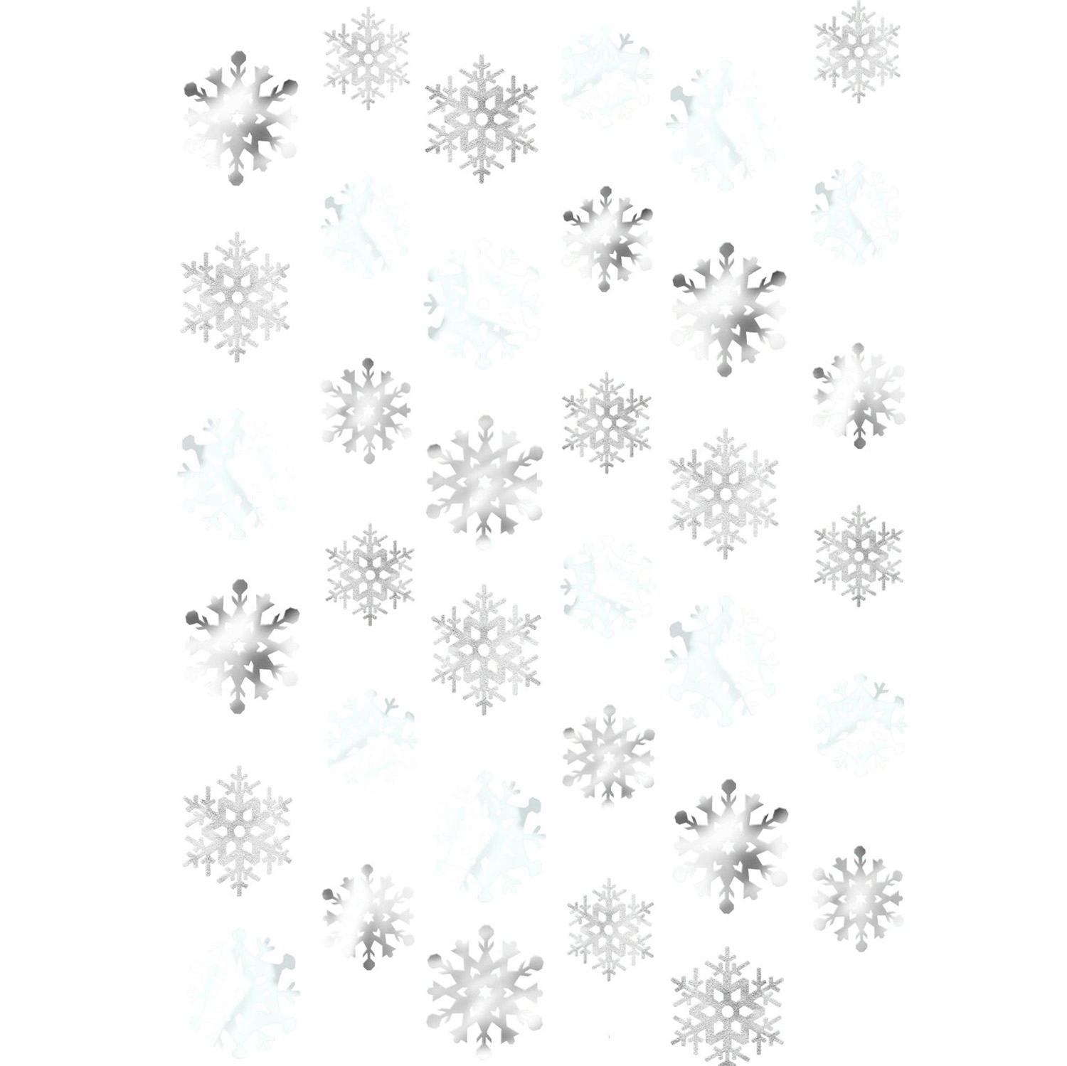 Een set van 6 slingers van 2,13 meter lengte. De sneeuwkristallen zijn gemaakt van wit en zilver folie.