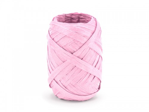 Rol raffia lint in de kleur licht roze om bijvoorbeeld je cadeau’s of bedankjes feestelijk te verpakken er zit 10 meter raffia van 5mm breed op een rol.