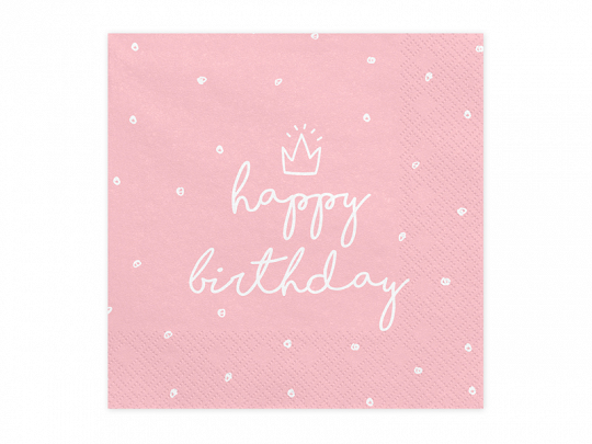 Inloggen| RegistrerenPakje van 20 papieren servetten. De servetten zijn 3 laags en uitgevouwen 33x33cm groot. Deze servetten zijn licht roze van kleur met een witte opdruk.