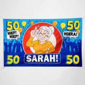 Inloggen| RegistrerenDeze verjaardagsvlag is 90x150cm groot. Met de tekst hiep hiep hoera abraham.